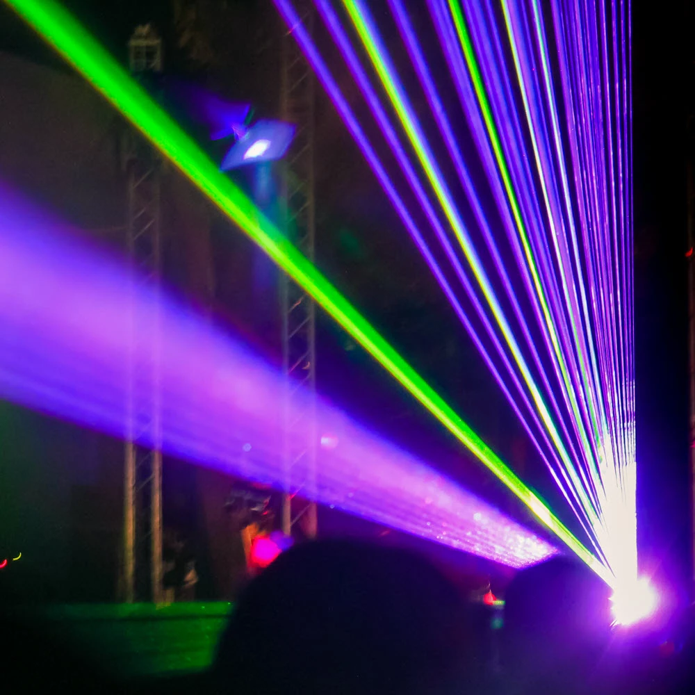 We recommend a smoke or haze machine to see the vibrant laser beams slicing through the air for that full club effect.