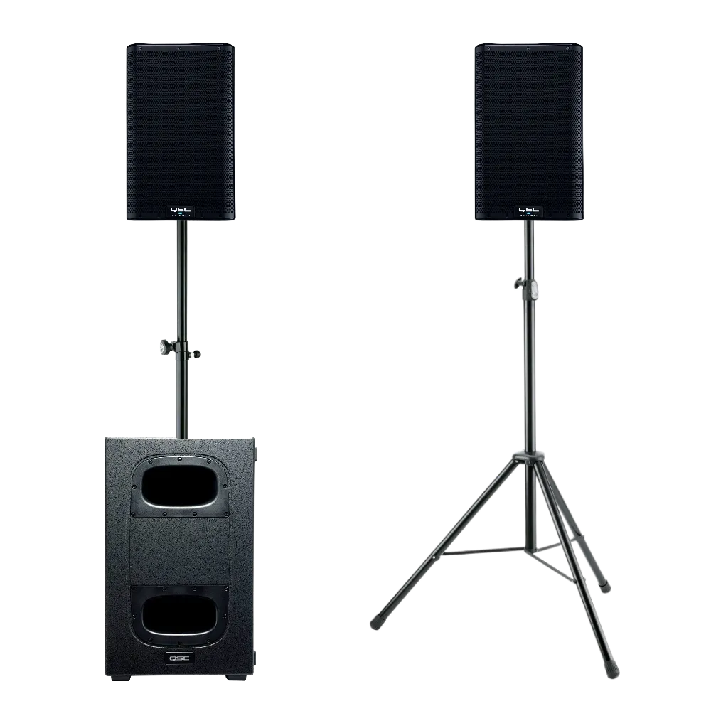 Clarity and thumping bass, it’s what we all want from our sound systems. That’s why the 2x QSC K10.2 Speakers + 1x K212C Subwoofer combo package is so popular. The 10” speakers deliver crystal-clear sound and the addition of a dual 12” sub means you have bass you can feel. If you have a venue or event on the smaller side, this is the play. These subwoofers have an inbuilt cardioid mode so are wicked for bands.